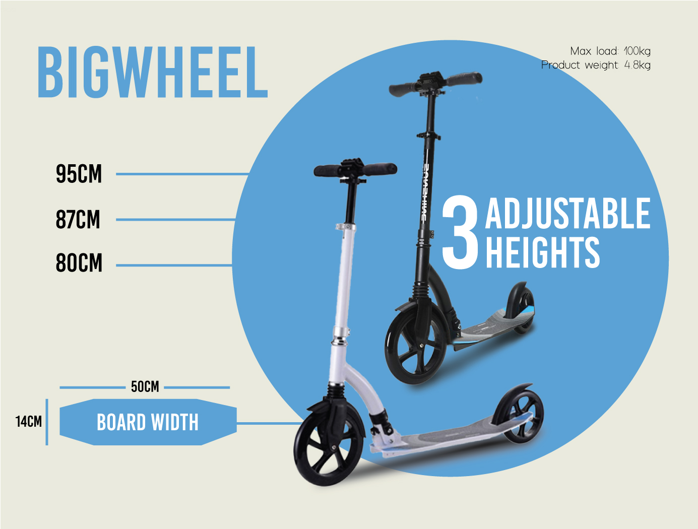 Perfect for short urban journeys and outing. FASTER, FURTHER, and MORE COMFORTABLY for teenage to adult . The Big Wheel scooter has front suspension and big wheels. What's more, the compact and lightweight, take it everywhere you can!