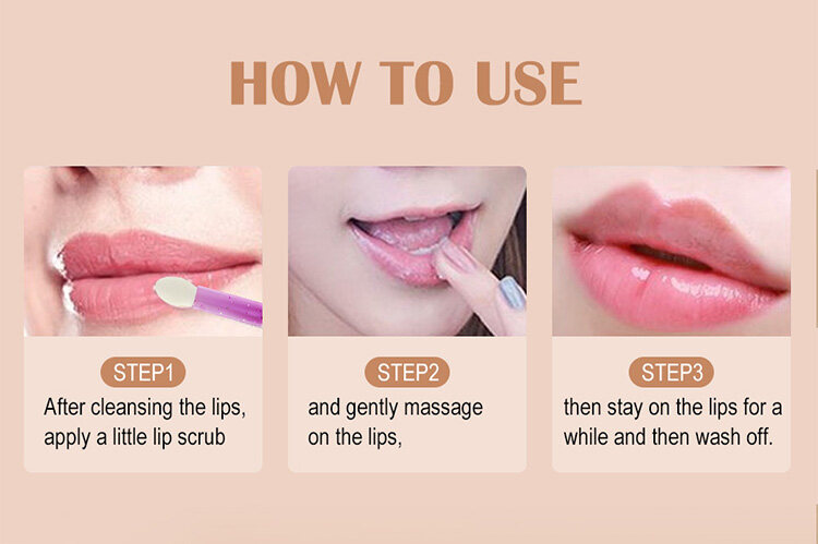 2. Take a proper amount of lip scrub and smear it evenly on the lips.