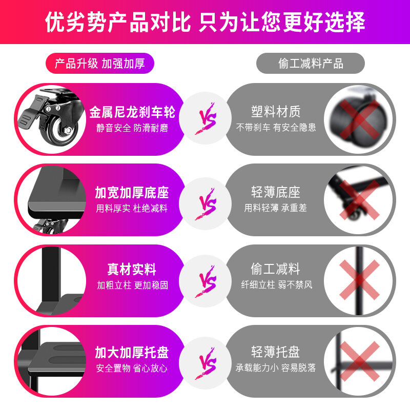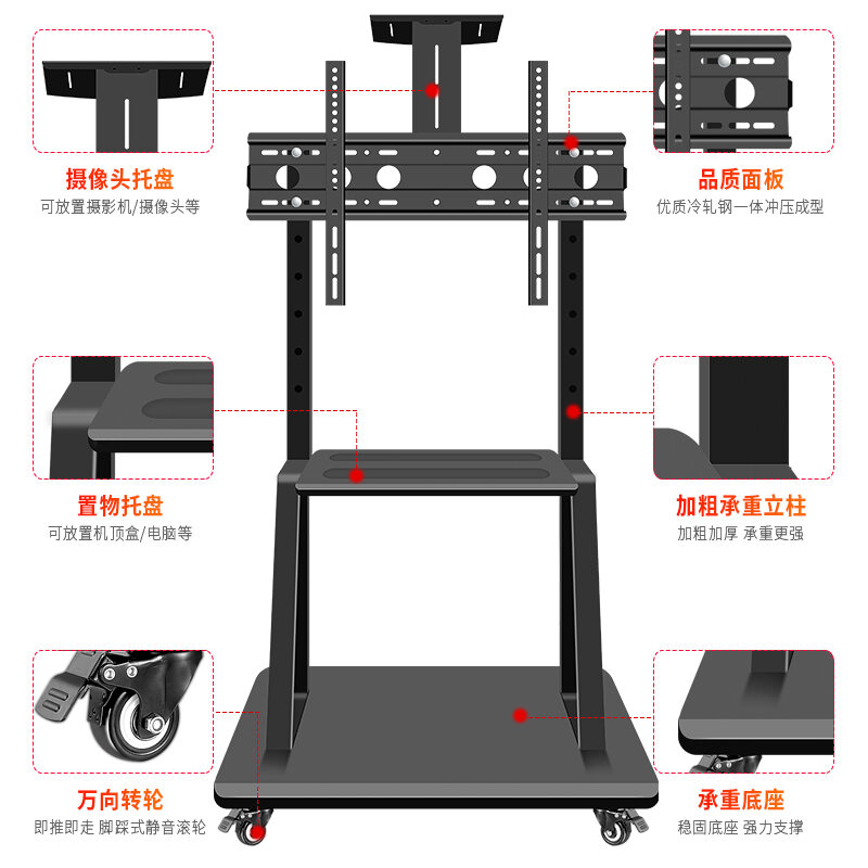 Universal TV Rack Movable Bracket Floor Punch-free Rack All-in-One Trolley 55/65-Inch