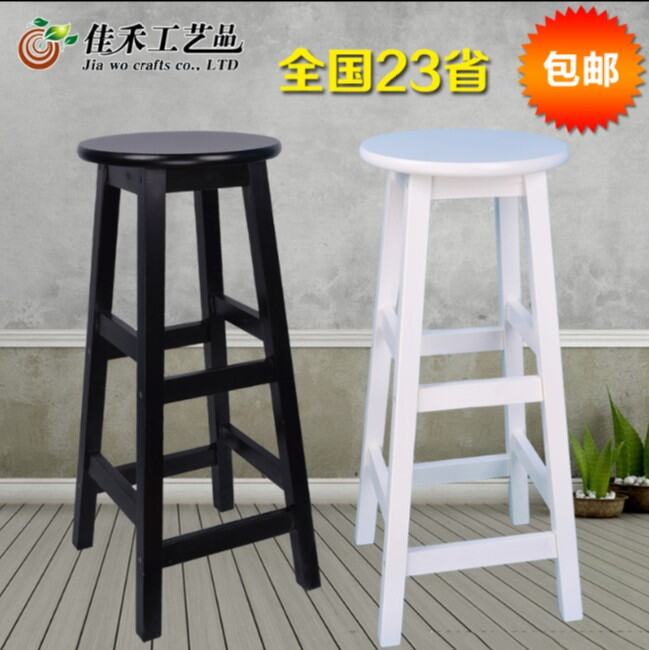 Solid Wood Bar Chair Simple Black and White Bar Chair Retro Stool European Front Desk Bar Mobile Phone Shop round Stool Creative