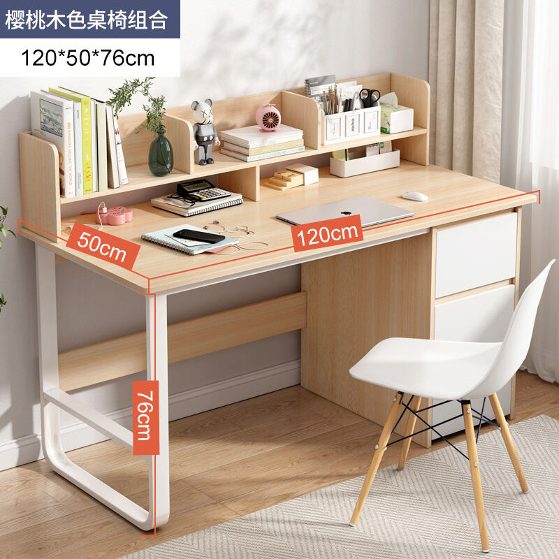 Writing Desk Student Home Junior High School Student Desk with Chair Bookshelf Integrated Computer Desk Simple Bedroom Desk