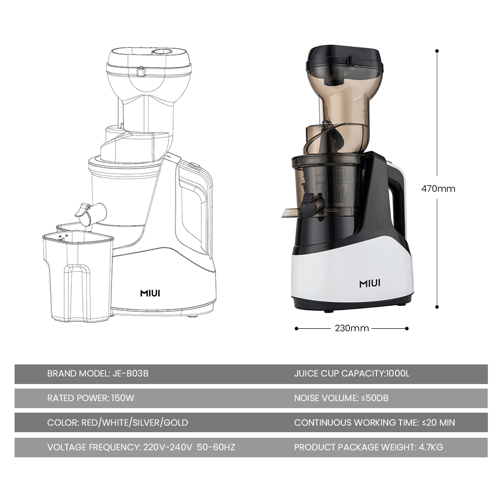 MIUI Slow juicer Cold press 7 level slow masticating juice extractor Unique FilterFree patented Multi-color NEW PRO