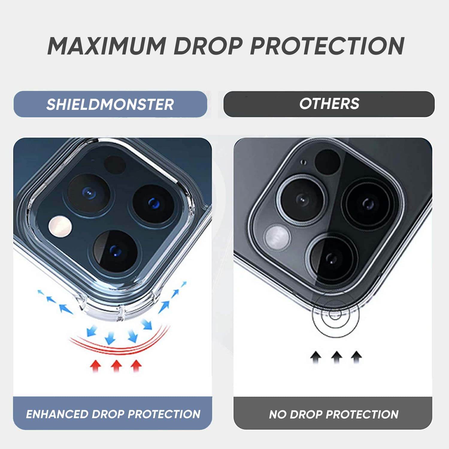 Shieldmonster iPhone Case 16 Pro Max/16 Pro/16/16 Plus/15 Pro Max/15 Pro/14 Pro Max/13 Pro Max/12/ 11/XS Casing Clear Hard Soft Transparent Clear TPU cover