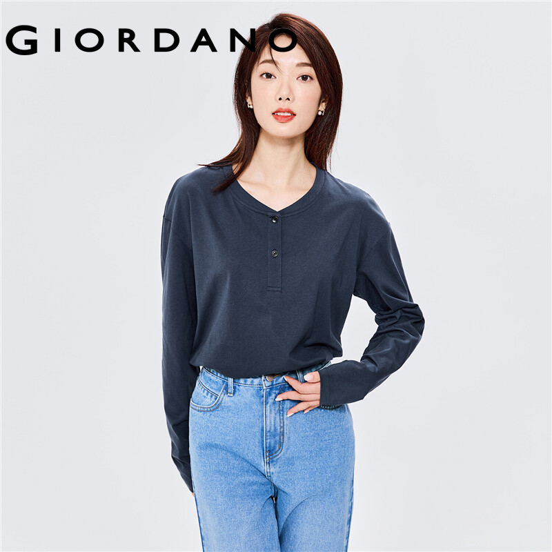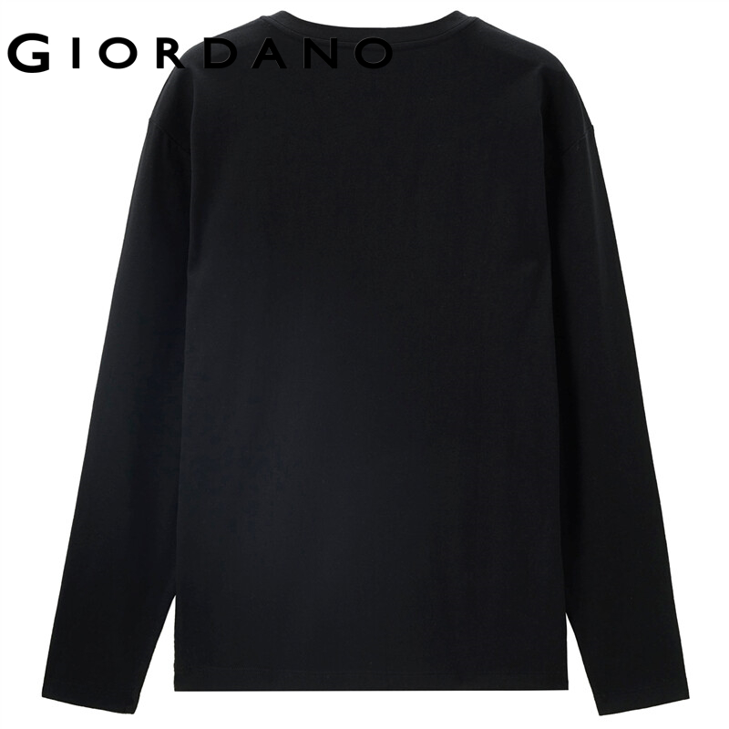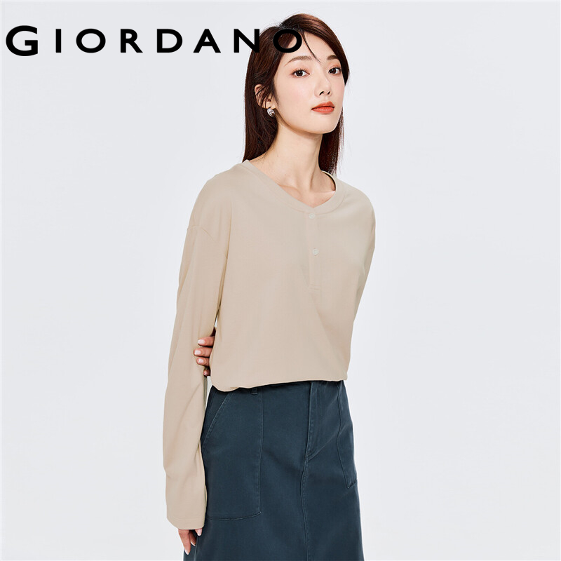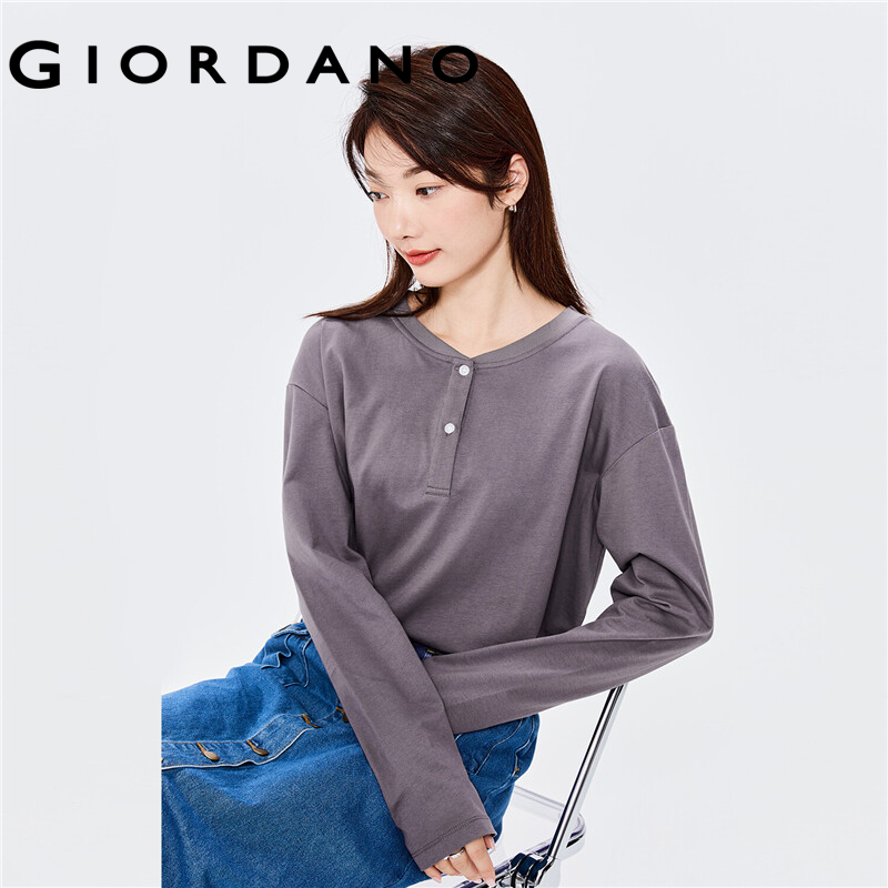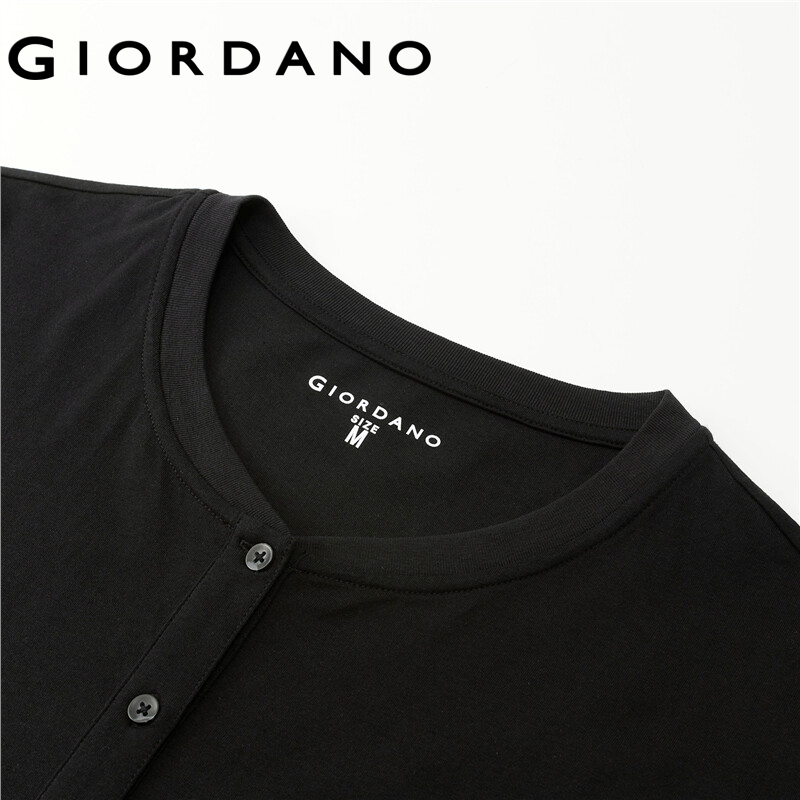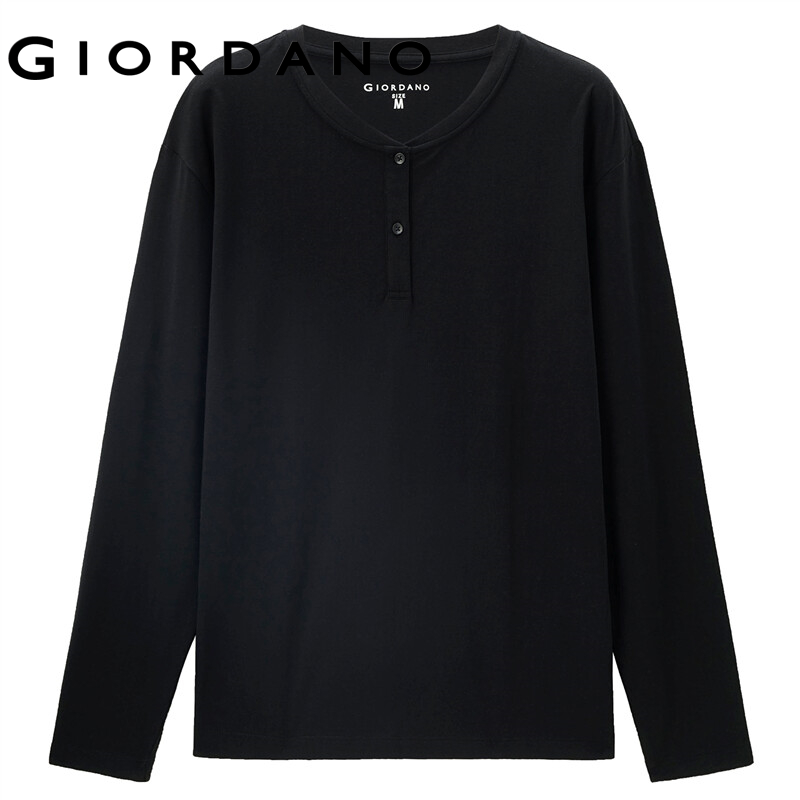 GIORDANO Men T-Shirts Ribbed Henley-Neck Classic Plain Color T-Shirts Long Sleeve 100% Cotton Simple Basic Casual Tee 13322760