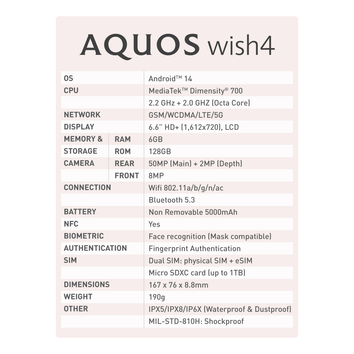 SHARP AQUOS wish4 Mobile Phone - Available in 3 Colours (Black/White/Blue)