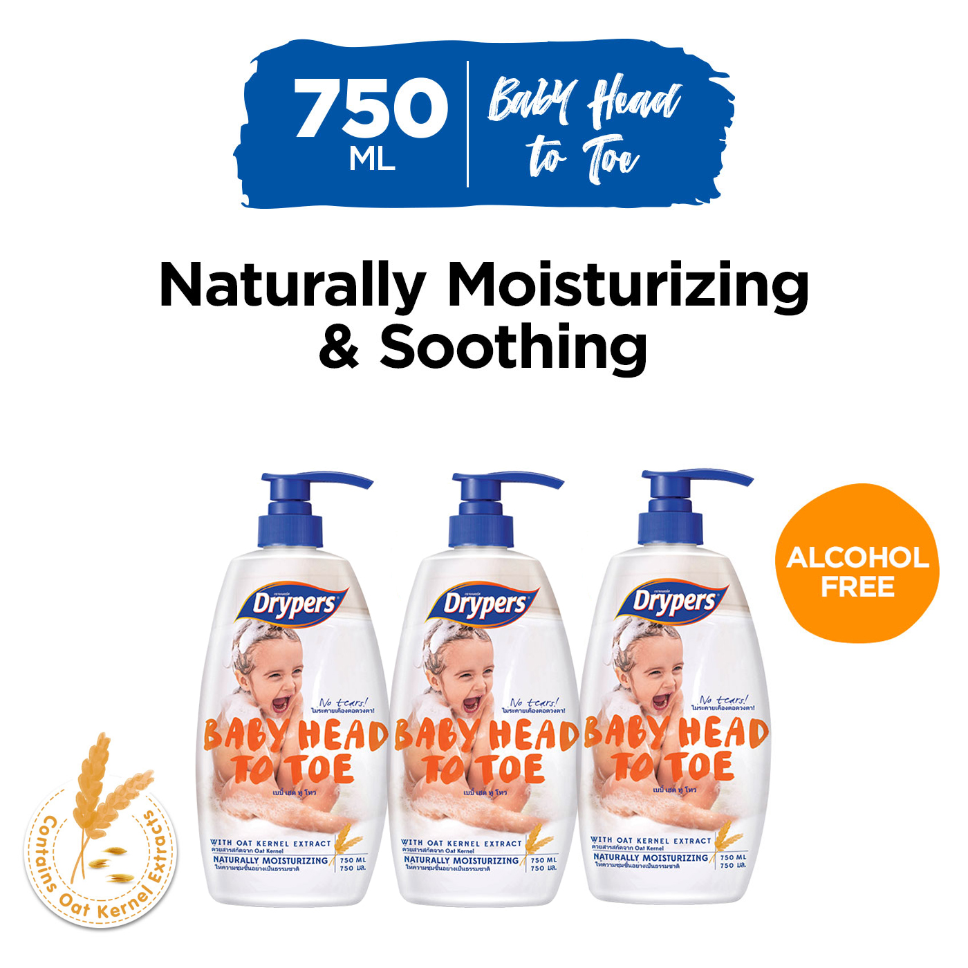 Drypers Baby Head to Toe Oat Bodywash 750ml / 700ml - Bundle of 3