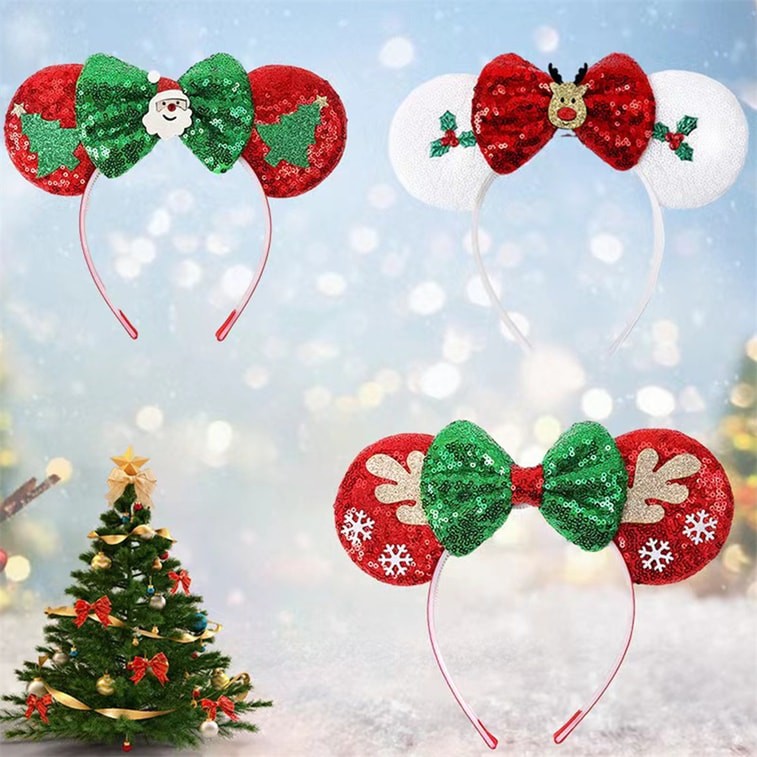Christmas Round Ear Head Band - Holly Leaf 1Pc