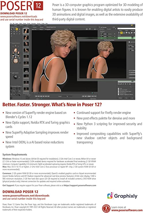 Poser 12 | The Premier 3D Rendering & Animation Software for PC and Mac OS | Easily create art and animation with 3D characters [Keycard]