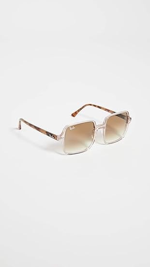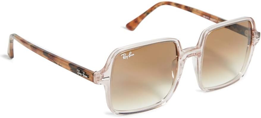 RB1973 square II sunglasses: These Ray-Ban women's sunglasses feature an iconic oversized square Acetate frame in transparent light brown with gradient brown lenses and are prescription ready